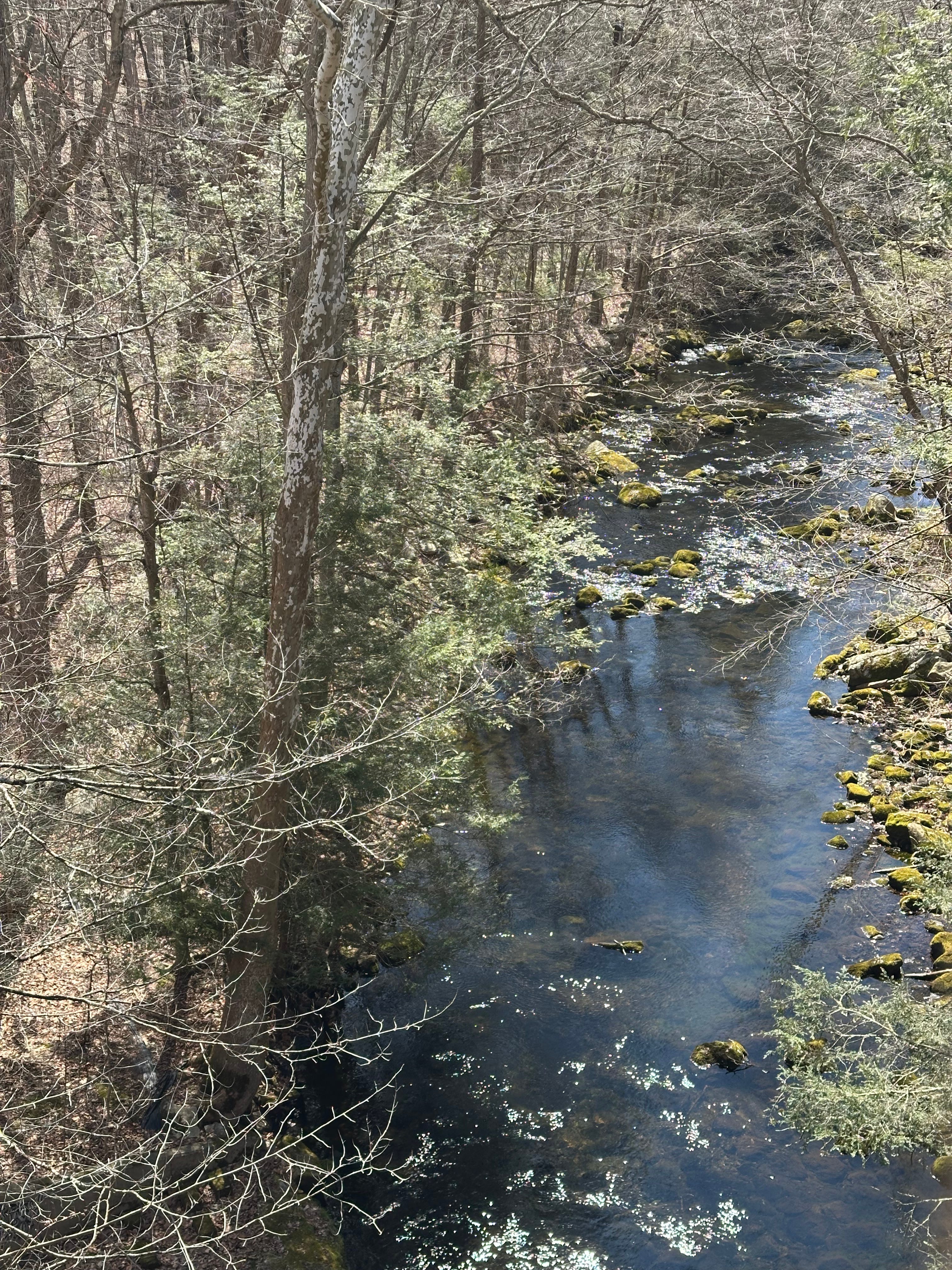This morning we left one car at the bottom and one at the top of the Putnam Trailway and walked 10.7 miles through the spring that is still debating its arrival, from Brewster to Mahopac, point to point. You can only go forward.