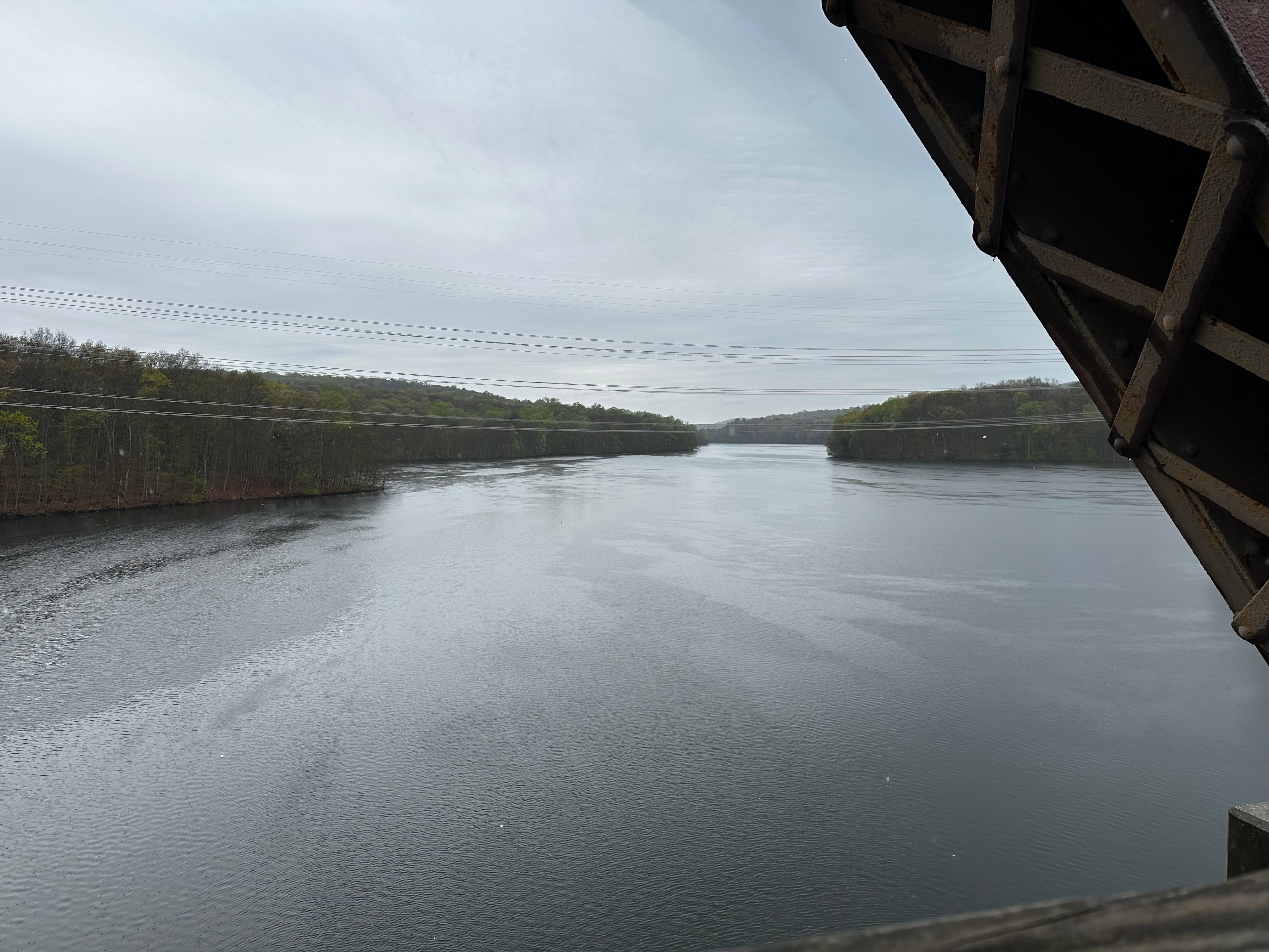 Looking down the New Croton reservoir from the bridge deck